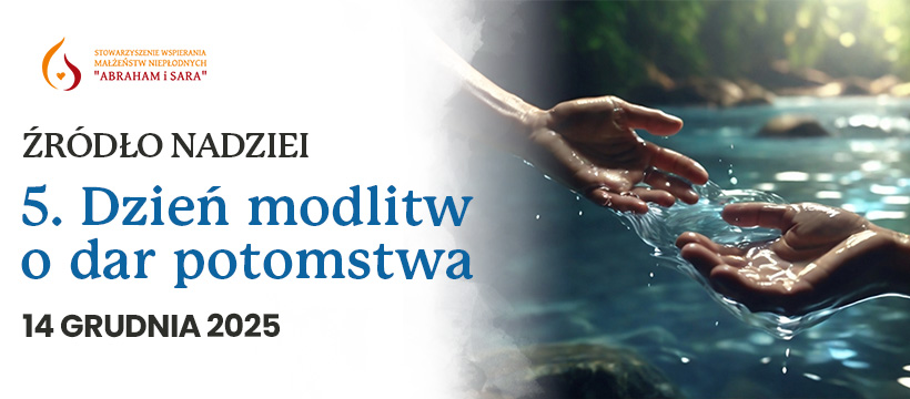 Już po raz piąty Stowarzyszenie Wspierania Małżeństw Niepłodnych „Abraham i Sara” wspólnie z Duszpasterstwem Rodzin Archidiecezji Krakowskiej zaprasza wszystkie parafie i wspólnoty do zaangażowania się w Dzień Modlitw o Dar Potomstwa. W tym roku będzie się on odbywał pod hasłem „Źródło nadziei”. Naszym marzeniem jest, aby wszystkie małżeństwa doświadczające dłuższego lub krótszego okresu oczekiwania na dziecko, miały świadomość, że cały Kościół wstawia się za nimi, że prosi o owoce ich miłości, że towarzyszy im w ich ogromnej tęsknocie. Jest oczywiście wiele miejsc, gdzie takie pary mogą znaleźć wsparcie i zrozumienie, ale wciąż jest ich za mało! Małżeństwa niepłodne często mówią o swoim osamotnieniu w Kościele, a czasem nawet o odrzuceniu. Dlatego szczególnie ważne jest, aby to lokalna wspólnota parafialna otaczała ich modlitwą i troską.