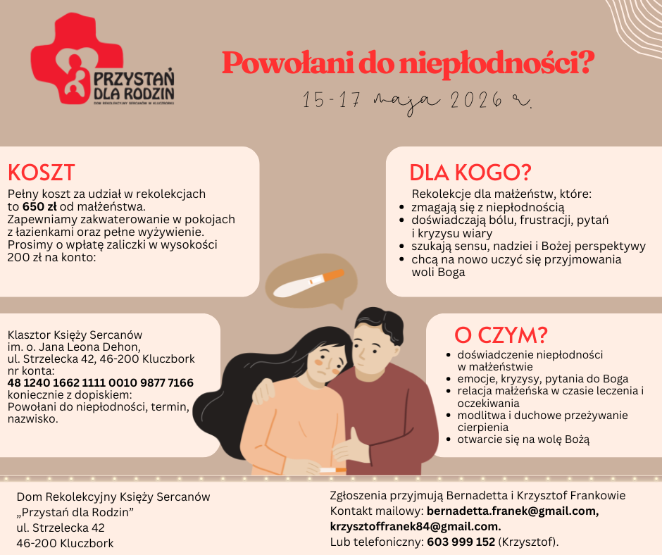 Miejsce: Dom Rekolekcyjny Księży Sercanów „Przystań dla Rodzin” w Kluczborku (ul. Strzelecka 42, 46-200 Kluczbork).